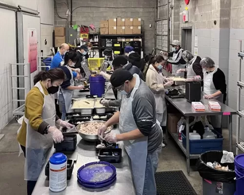 - Organize a Volunteer Team – there are opportunities throughout the year to help package meals that are created in our Commercial Kitchen Facility. Email: volunteers@alovingspoonful.org for more info.